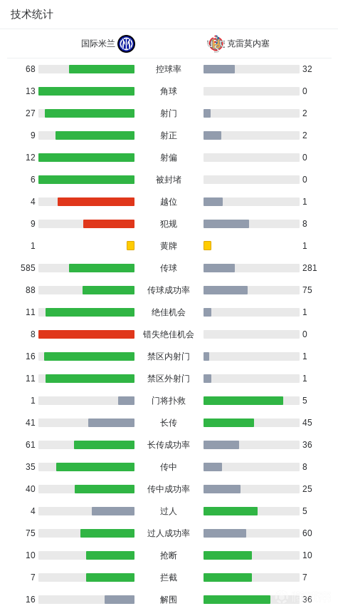 第87分钟,克雷莫内塞扳回一城,博纳佐利后点轻松推射破门,比分变为克雷莫内塞1-4国米